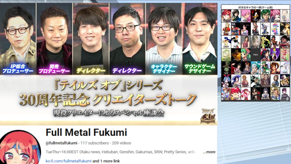 Sample for my translation and commentary of the Tales of Series 30th Anniversary Developers Talk Show