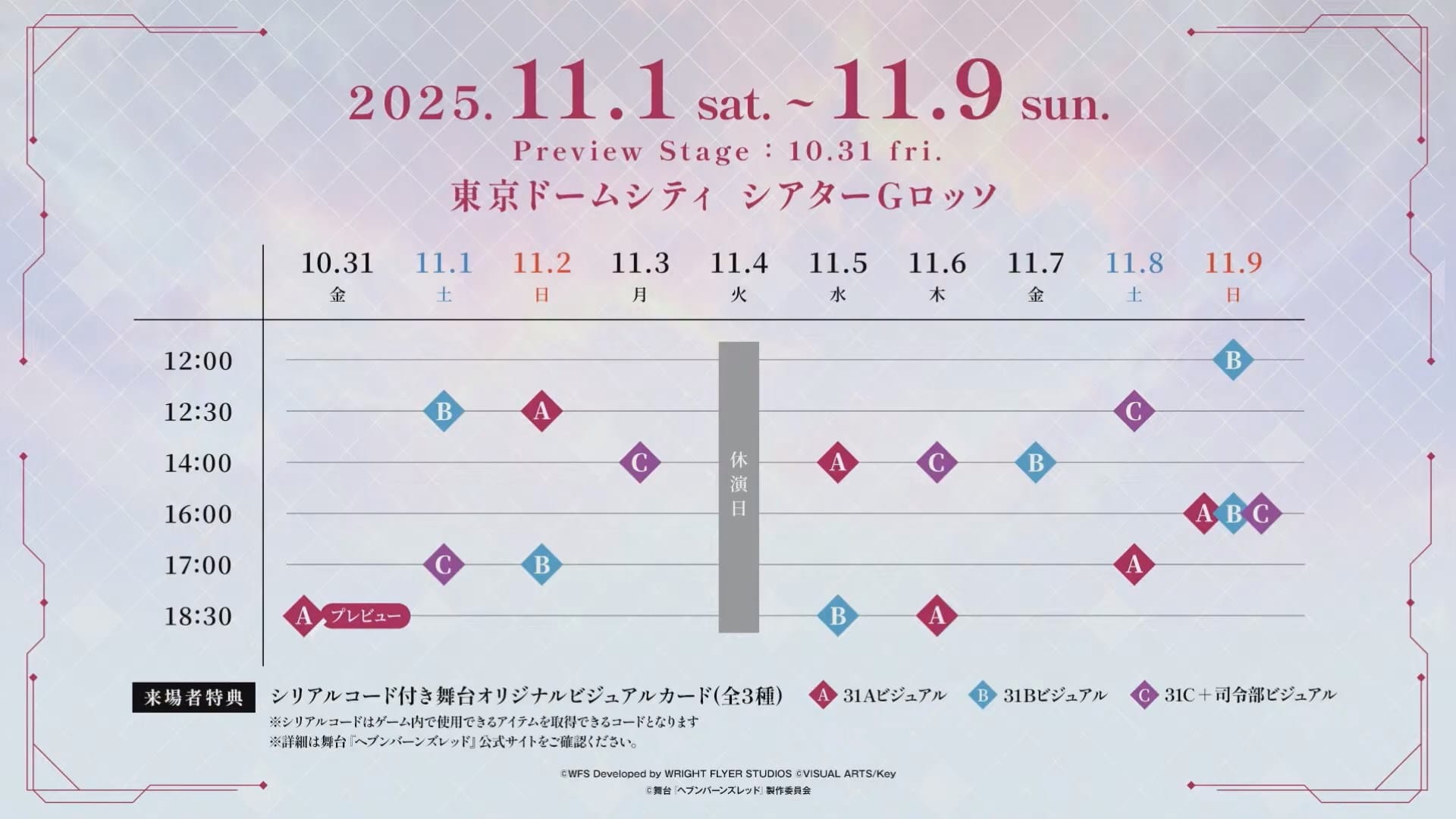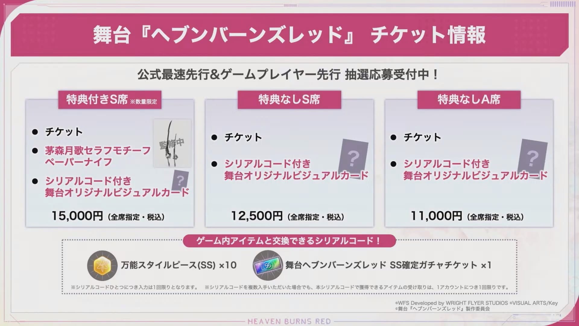 Stage Play schedule and tickets. It's lottery as usual with all event in Japan but they most notably made some preorders available via in-game so players have higher chances.