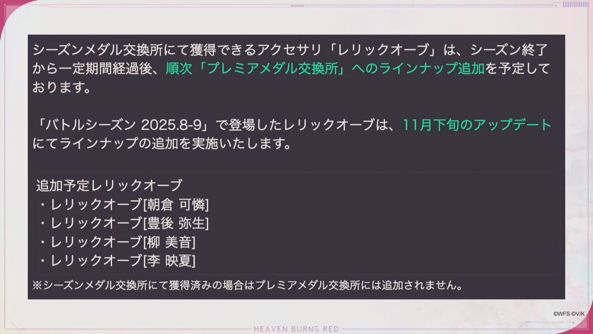 — ヘブンバーンズレッド公式 (@heavenburnsred) October 2, 2025