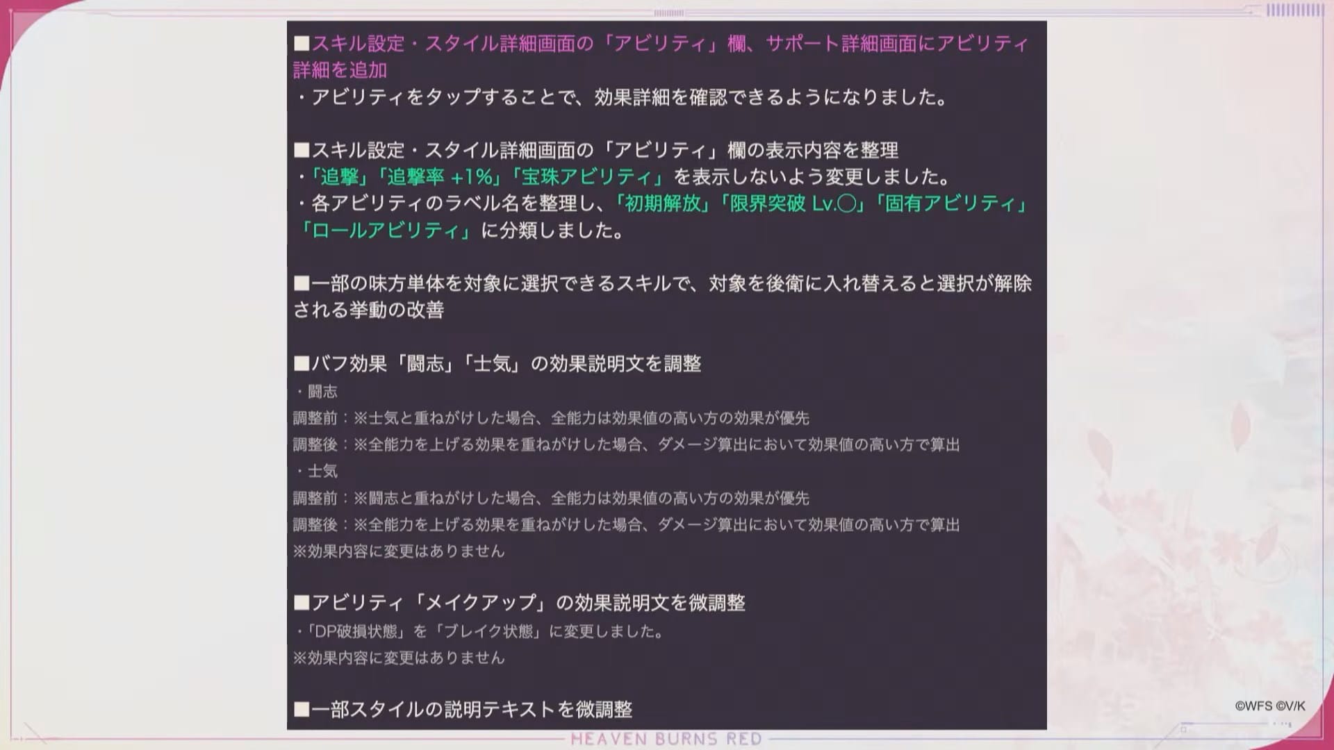 Update regarding the status screen that appears in-battle when you do a prolonged tap on a character: basic Abilities that nearly every single chara has anyway like Tsuigeki/follow-up attack and the +% from the Tears upgrade won't display anymore. This will make it easier to see the Abilities that actually matter. They also changed some Unique Abilities' text descriptions so they're easier to understand.