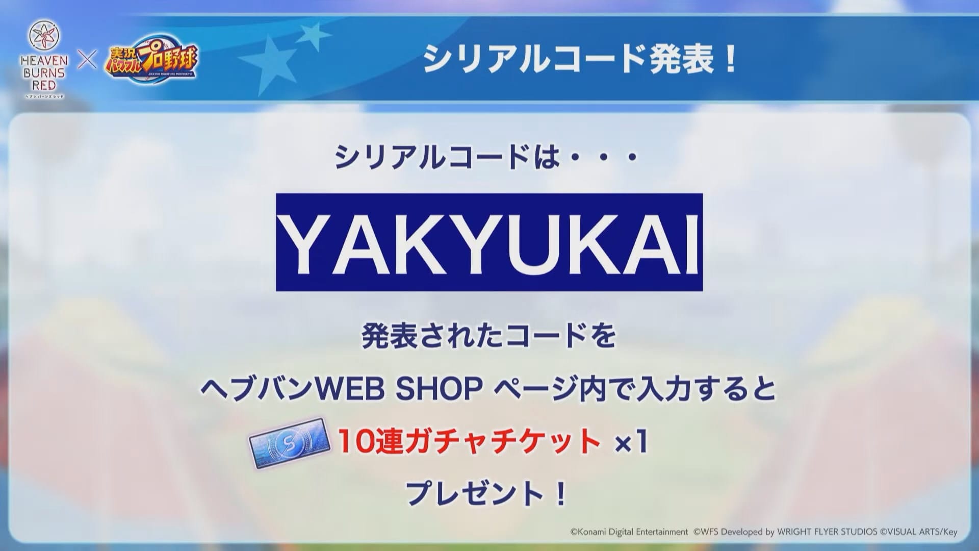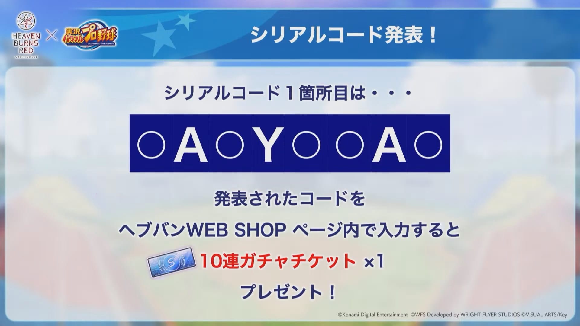 Kakinuma: so yeah we announced this at the 3.5 anni. It's finally time to reveal it fully. And it'll launch tomorrow Oct 3. We're doing this campaign too. 10 free pulls code that will be revealed during the stream. This is the first part of the code. You need to make an account on the Web Shop and redeem the code there.