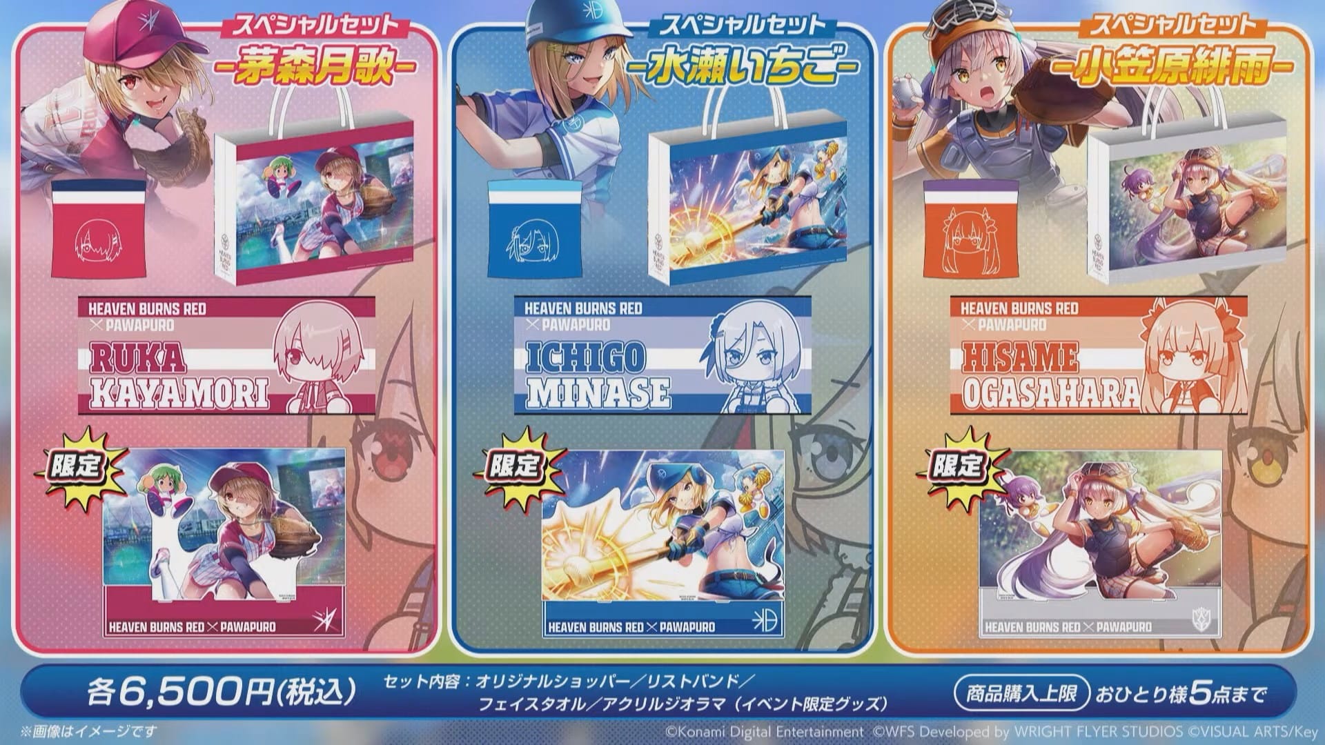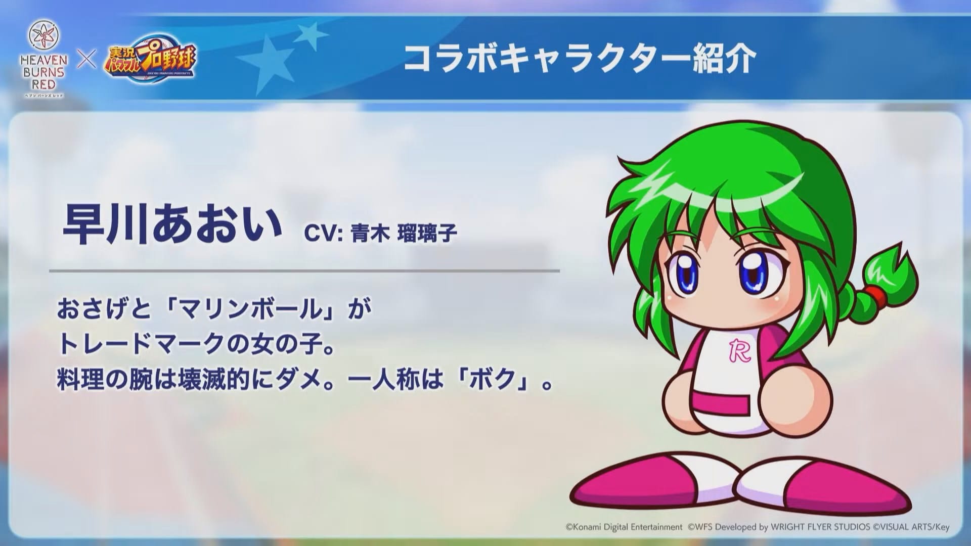 Konami's PawaPuro kun, Hayakawa Aoi, Tachibana Mizuki, Rokudo Hijiri join Heaven Burns Red in a crossover event written by Kai & Sorami Kohaku. Collab Styles/Memorias for Ruka, Ichigo, Hisame.