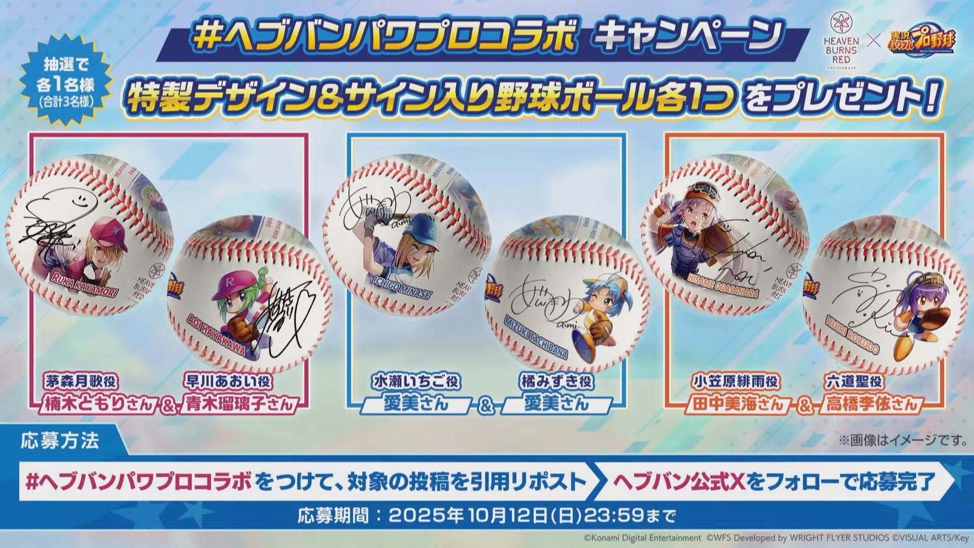 Twitter campaign to win baseball balls signed by the seiyuu in the collab.