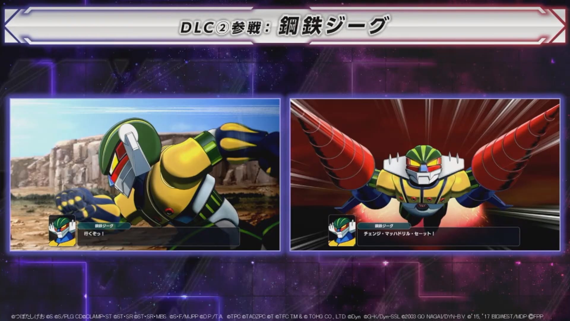 It's the first time in 14 years Kotetsu Jeeg appears in a console SRW. TomaP said its additional parts appear in its battle animations, and his strongest attack will feature Jeeg Pantheroid.